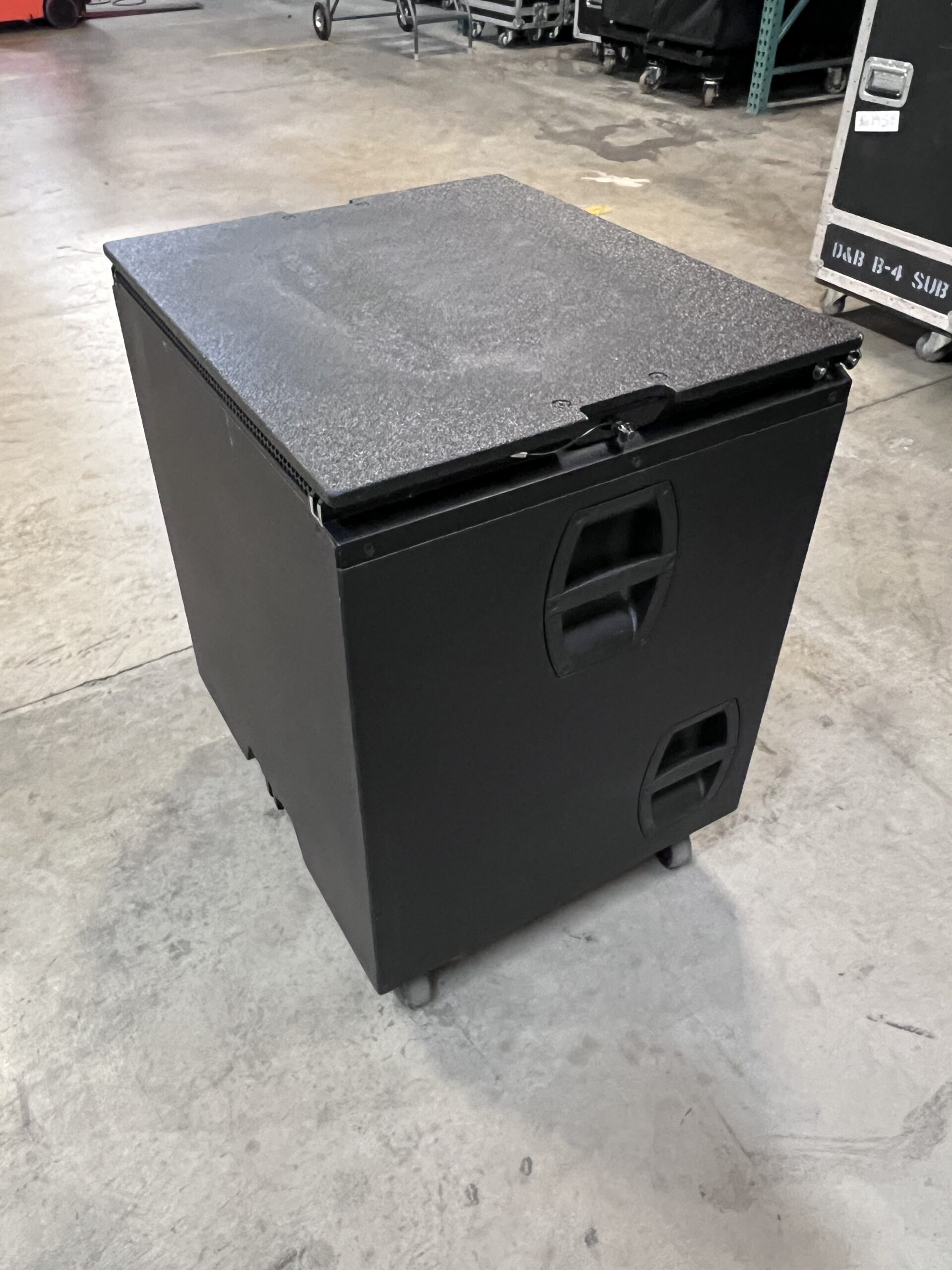 The d&b V-SUB is a high-performance, compact subwoofer designed to complement the d&b V-Series loudspeaker systems, delivering powerful and controlled low-frequency reproduction in a relatively small and highly transportable enclosure. It features a single long-excursion 18-inch driver housed in a bass-reflex cabinet, engineered to provide a tight, punchy low end that integrates seamlessly with V8 and V12 tops. Despite its compact footprint, the V-SUB is capable of producing impressive sound pressure levels, making it suitable for a wide range of applications from touring and festivals to theaters, corporate events, and permanent installations. The cabinet is built from marine plywood with a durable protective coating, designed to withstand the rigors of professional use while maintaining consistent acoustic performance over time.