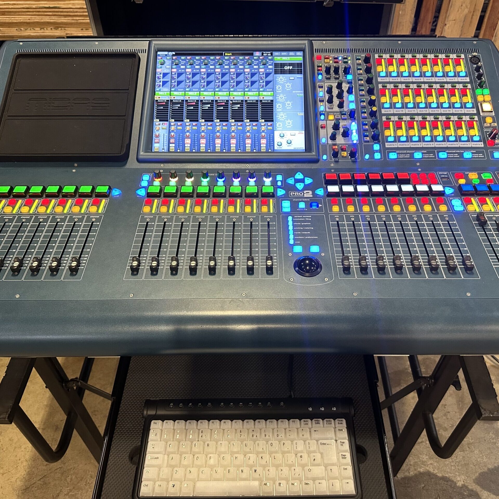 In summary, the Midas Pro2 is a versatile and powerful digital mixing console that combines the best of analog and digital audio technologies to deliver exceptional live sound reinforcement. Its high-resolution processing, integrated digital effects, and expansive connectivity options make it suitable for complex and demanding audio environments, from concert halls and theaters to broadcast studios and corporate events. With a design focused on user-friendliness and reliability, the Pro2 enables audio professionals to achieve pristine sound quality and creative flexibility, ensuring that every performance is mixed with precision and clarity.